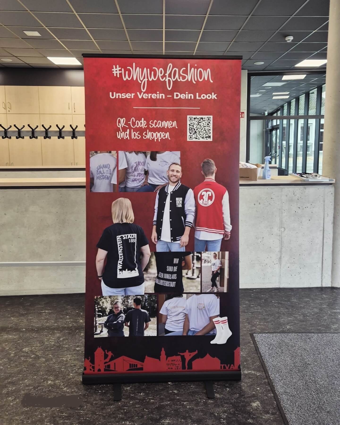 Für die Heimspiele der Handballer des TV Altdorf durfte ich das neue Rollup für ihren Vereinsmerch gestalten – ein echter Blickfang im Foyer und an Spieltagen kaum zu übersehen. ❤️🖤 👉🏻 Mit klarer Überschrift, einem gut erreichbaren QR-Code für den direkten Weg zum Shop und den wichtigsten Produkten auf einen