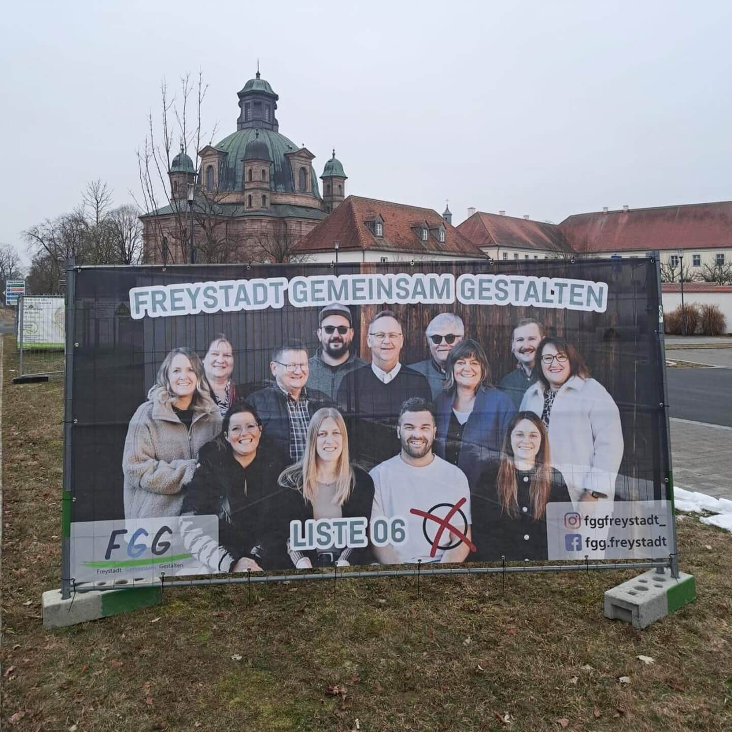Für das Bauzaunbanner „Freystadt gemeinsam gestalten“ war klar: Es geht nicht nur um Information, sondern um Identifikation. 🤝 Großformatige Portraits schaffen Nähe, der klare Claim darüber Haltung. Die reduzierte Farbwelt sorgt für Ruhe im Außenraum, während die Typografie selbst aus der Distanz prägnant und lesbar bleibt. 👀✨ Gestaltung im öffentlichen