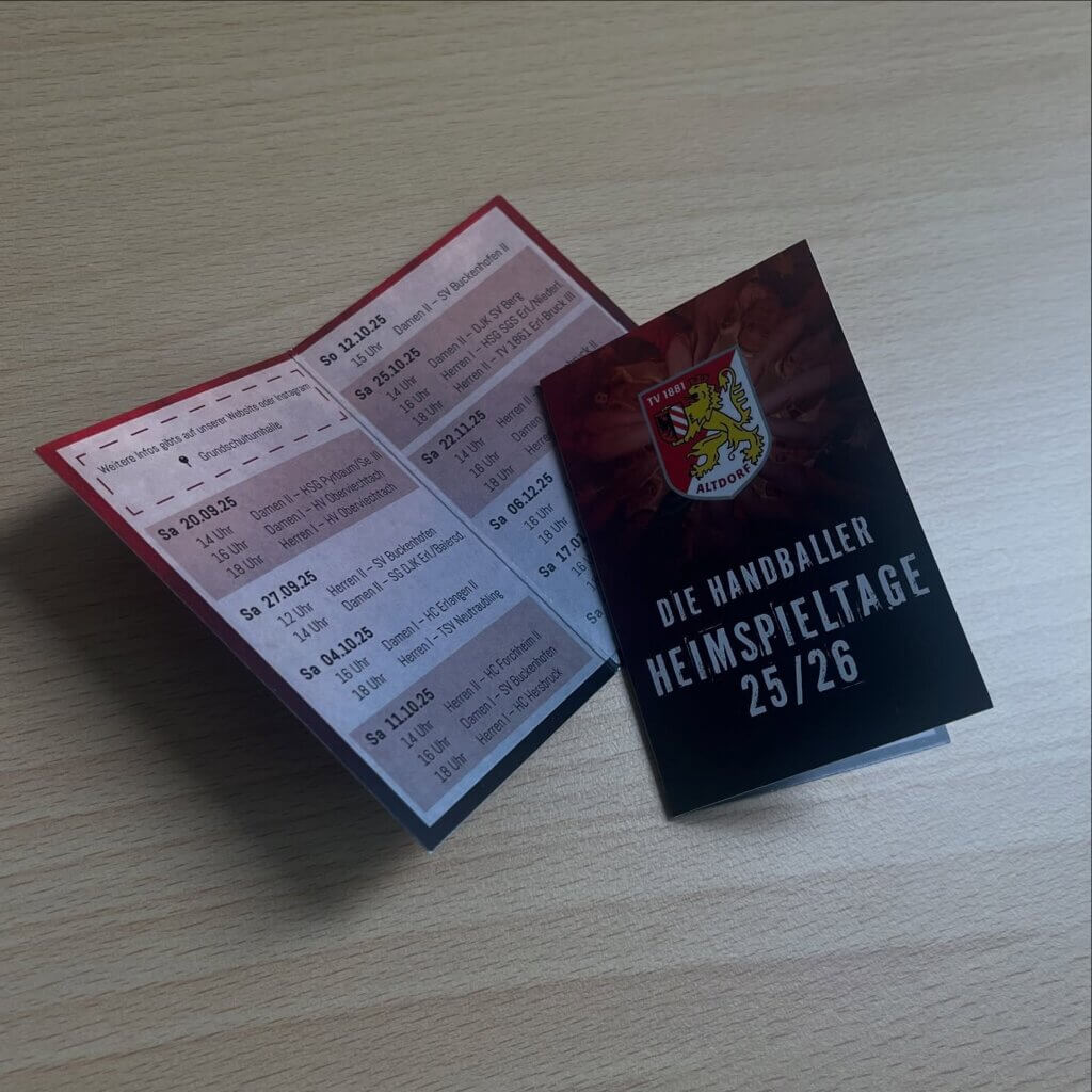 Die Heimspielkarten sind bewusst kompakt gedacht. Alle Heimspieltermine auf einen Blick. Kein Nachfragen, kein Scrollen, kein Vergessen. Genau dafür sind sie da. Sie stecken in Geldbörsen, Jackentaschen, hängen an Hallentüren und begleiten Fans, Spieler*innen und Unterstützer durch die gesamte Saison.