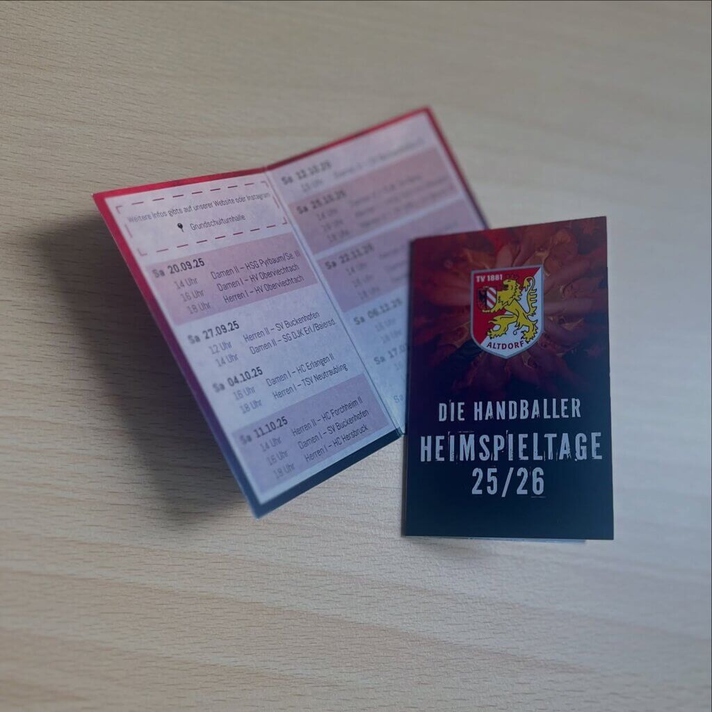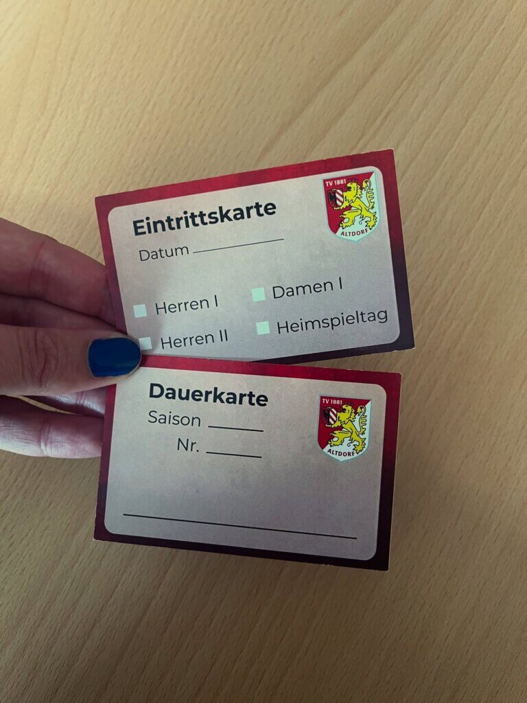 Für die neue Saison 25/26 durfte ich den TV Altdorf erneut gestalterisch begleiten ❤️🖤. Entstanden sind zwei Dinge, die im Vereinsalltag klein wirken, aber viel tragen: Heimspielkarten sowie Eintritts- und Dauerkarten.