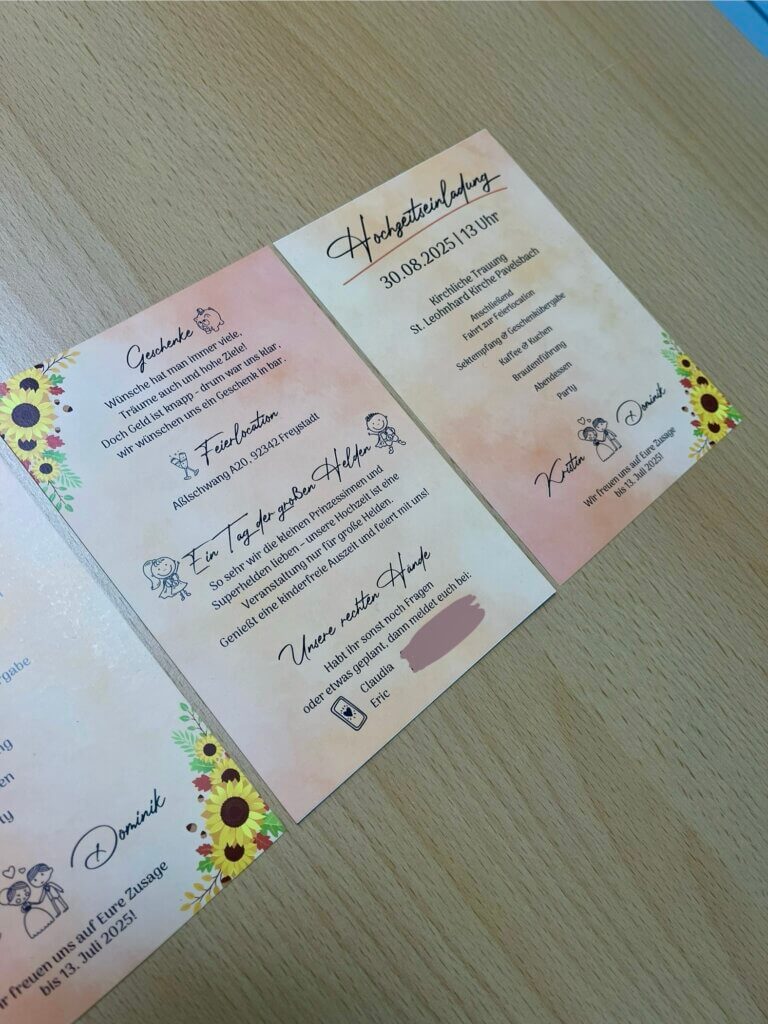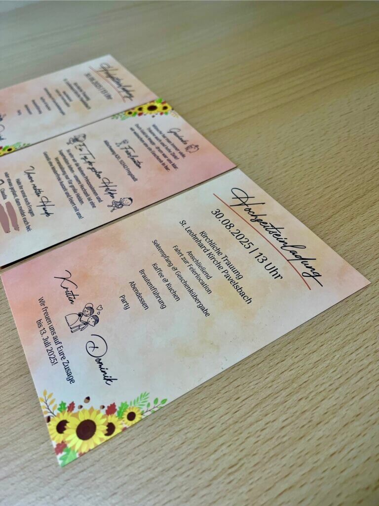 Für Kristin & Dominik durfte ich eine vollständige Hochzeitspapeterie gestalten – von den ersten Save the Date Karten bis zu den liebevollen Anhängern am großen Tag. Ein Konzept, das durch warme Farben, florale Elemente und eine natürliche Leichtigkeit verbunden ist. 🌻