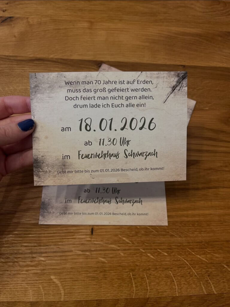 Auf der Rückseite befinden sich klar und gut leserlich alle wichtigen Infos zur Feier 👀